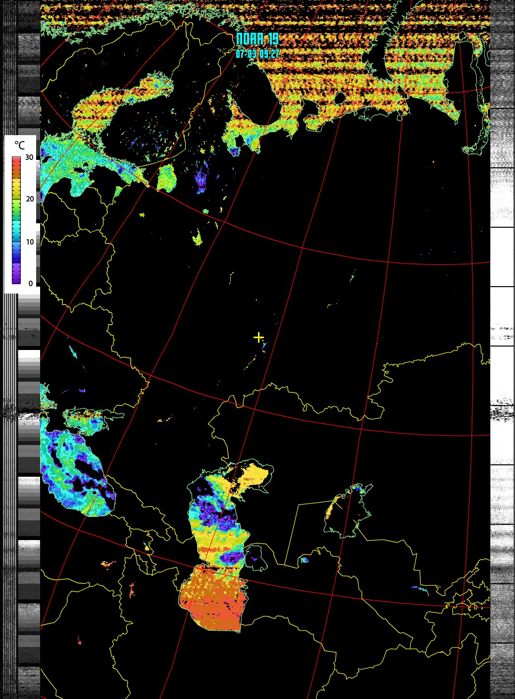 NOAA-19 Композитный снимок (Теипература поверхности моря)