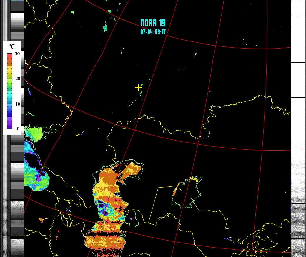 NOAA-19 Композитное изображение. Температура поверхности моря.