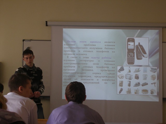 С первых же слов своего выступления Артём Шишминцев "заставил" внимательно и с интересом слушать. Сразу стало понятно, что это настоящая научно-исследовательская работа. Каждый год на конференции представлялись подобные работы, в один год было даже два доклада с таким названием. Но такое полное многостороннее исследование было впервые. Особенно порадовало, что сначала было толково рассказано об электромагнитном излучении, как о физическом явлении. Логично выстроена, интересно и понятно представлена презентация. Наверное, не совсем деликатно получилось, но уже в кулуарах задали вопрос, кто же всё-таки делал презентацию? Научные руководители удивились вопросу, сказав, что с их стороны помощь была только методическая.